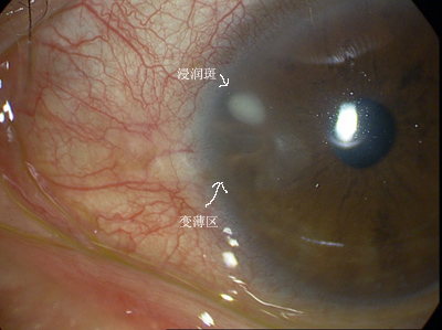 翳成期:凡角膜上有可见的混浊性病变,是为翳成期。翳又有热翳及冷翳之分,前都指进行性病变,后者为因定性病变。本期可发于上述三期的每期内,翳的多少,常标志病损的严重程度。
