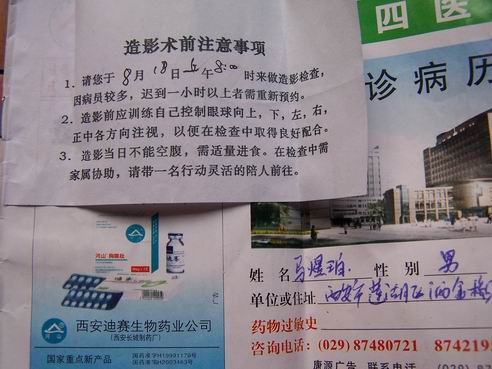 (1). MaYi er, male, 10 years old, live in xian city, the hui nationality with 50, golden bridge, 19 August 2005, when our first days in xian city people's hospital has 4 by experts (wang) diagnosis of 1. Left eye optic dysplasia, 2. The left eye, and through the with all kinds of treatment, all did not have good curative effect. Come check the visual acuity of the right eye 1.5, 0.1, two eyes only left eye eyesight can vary considerably.one left eye, the check, macular area sallow, concave reflective color center is not clear, we used in the treatment of monocular amblyopia time is long, the difficulty is very big also, later told the parents, hope it can long-term treatment with, can get satisfied results, and to the ten days, combined with Chinese traditional medicine iontophoresis treatment of oral medicine, 10 days after the left eye sight unexpectedly miraculously, rise to 0.25, a month later, the visual acuity increased to 0.6, the patient and family confidence, and continue to take medical treatment, on November 6, 2005, to review sight have 1.2, this also is that we don't think of! Three years later has not seen patients that visit, is totally recovered, no recurrence